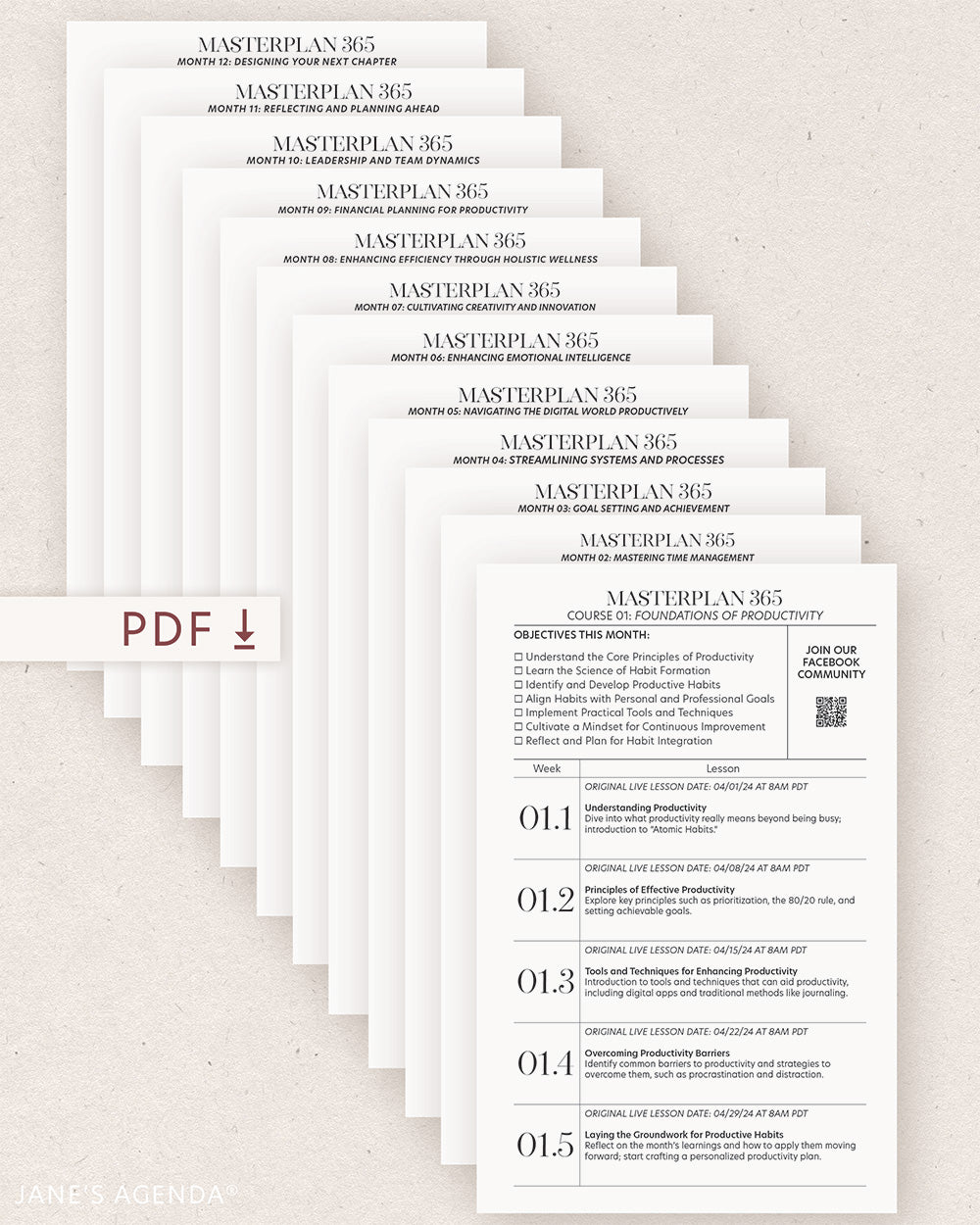A year-long training program featuring expert guidance, monthly themes, and community support to help you master your planner and achieve your goals.