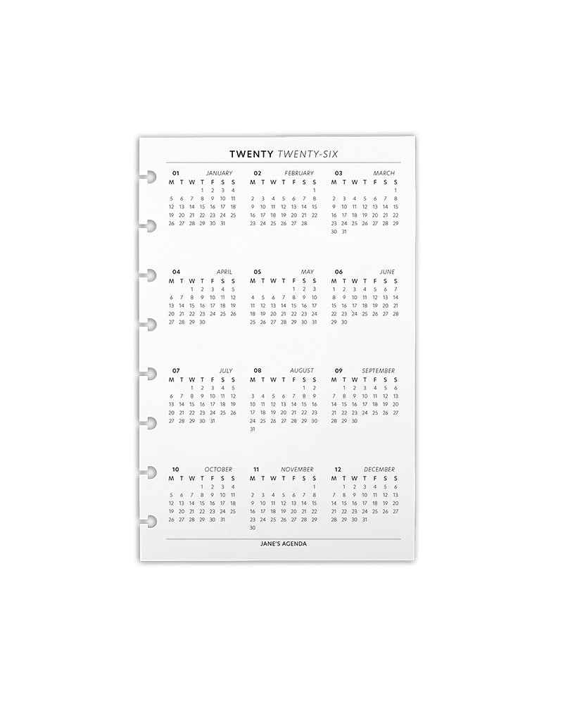 See your entire year in one glance with this dated year-at-a-glance calendar dashboard. The front features a full-year dated calendar in a Monday start, perfect for big-picture planning, while the back lists major holidays so you’ll never miss an important date. Slip it into your planner for an instant reference you can flip to anytime.