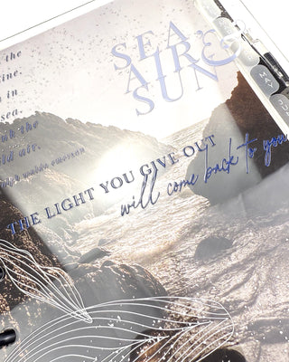 Clear Plastic Discbound Planner Cover | Silver Foil w/ Embossed Ink | Sea, Air & Sun
