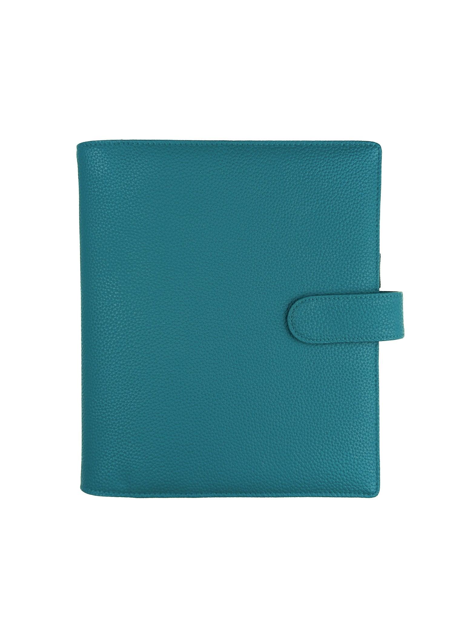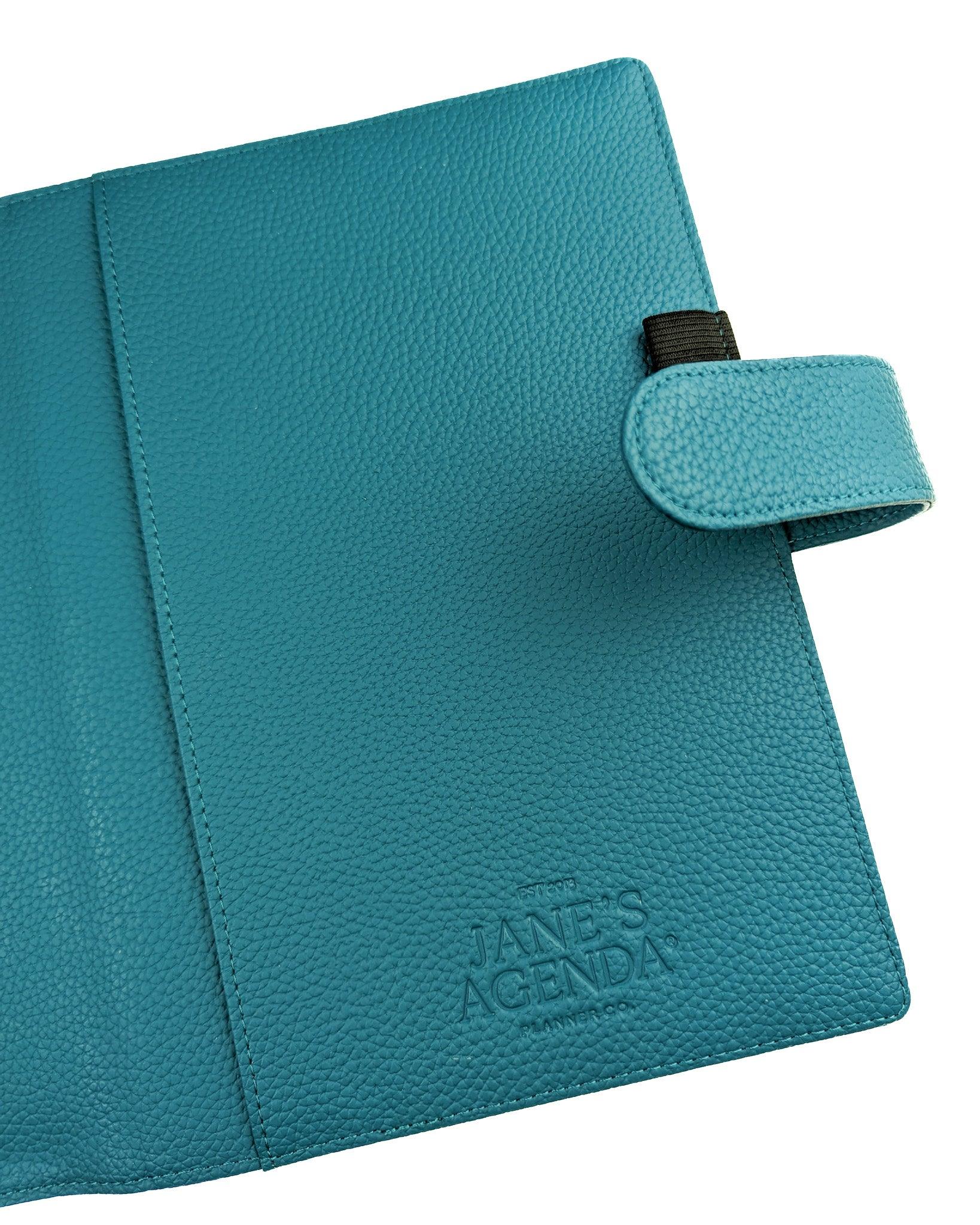 This beautiful peacock blue cover with a matte finish, and pebble grain vegan leather is designed with quality and luxury to give you a feeling of elegance while you plan your day-to-day.