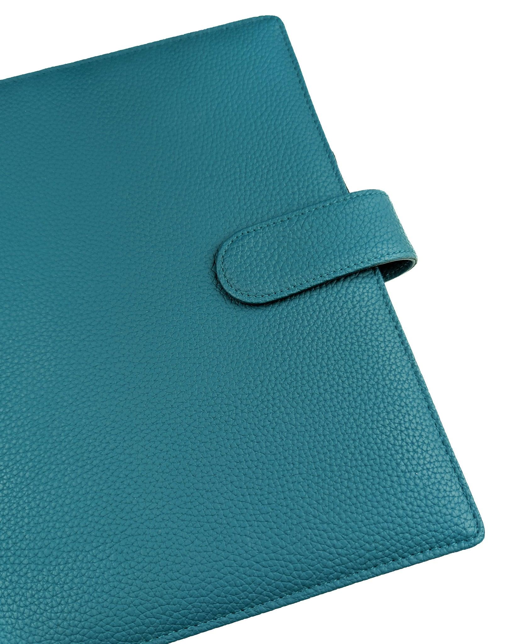 • Soft, matte finish, wrap-around premium planner cover from peacock teal luxurious microfiber vegan leather. This leather boasts the same durability as genuine leather without any guilt.