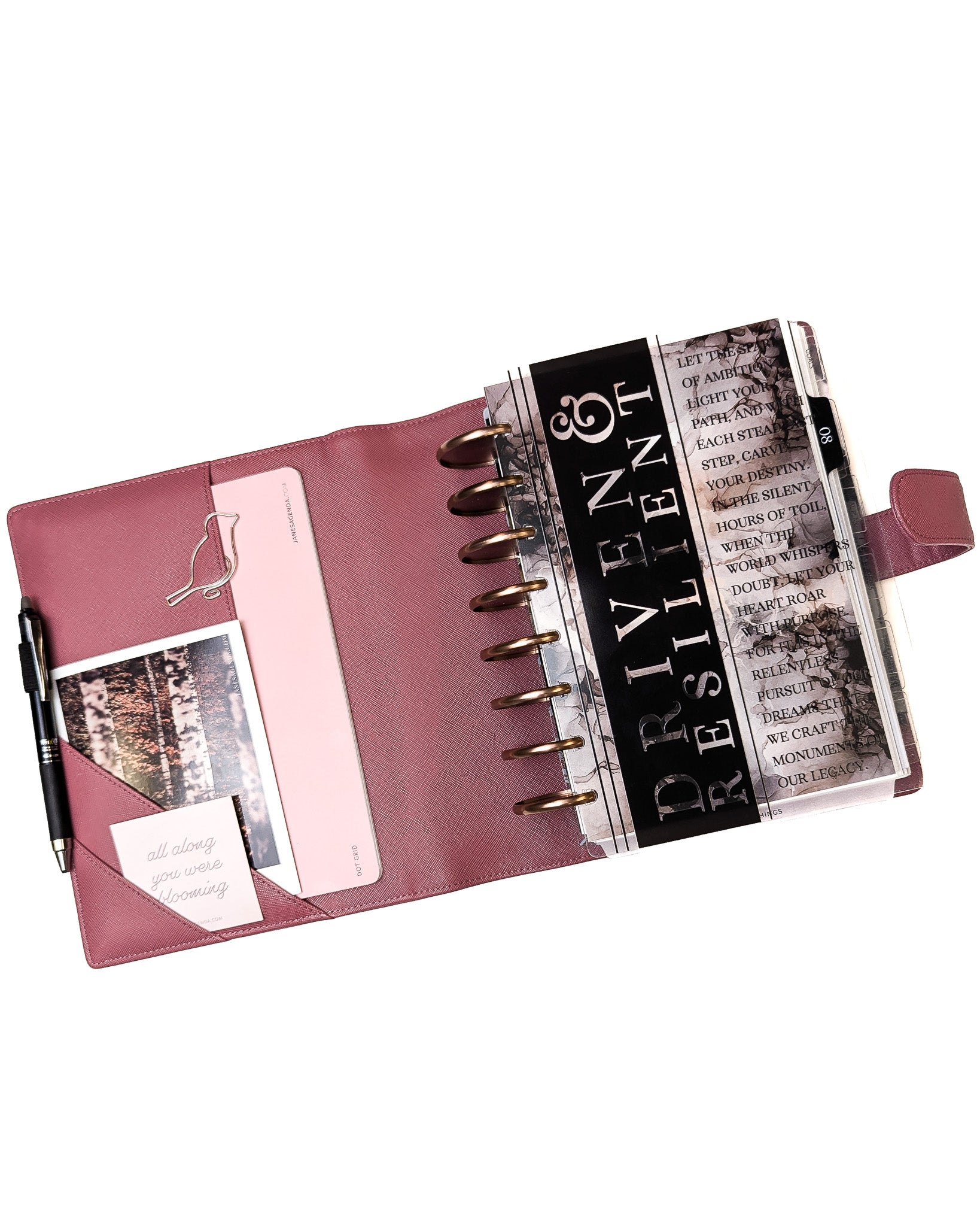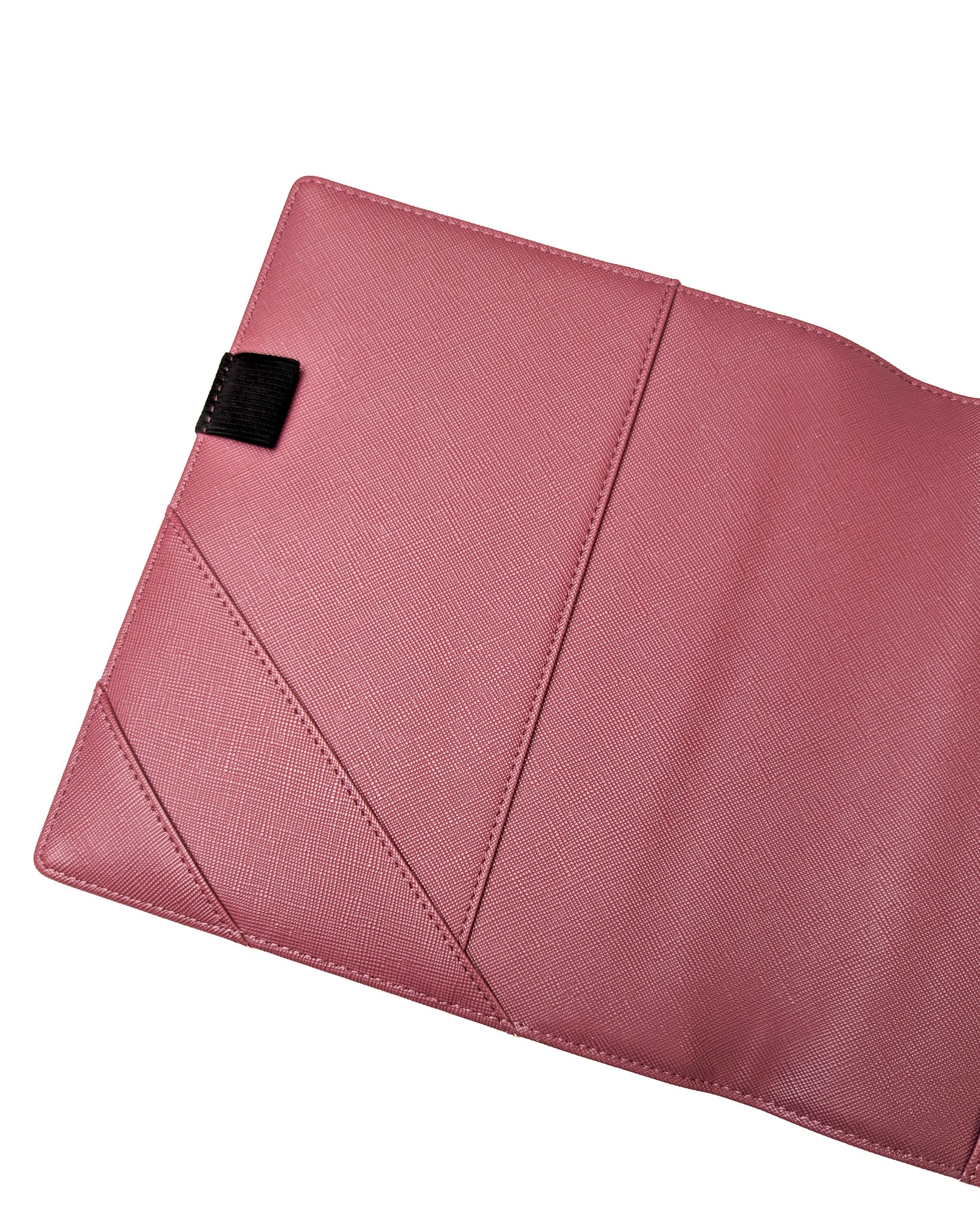 Introducing a new and elegant Saffiano Vegan Leather Wrap Planner Cover for discbound planners in a gorgeous Rouge Pink.