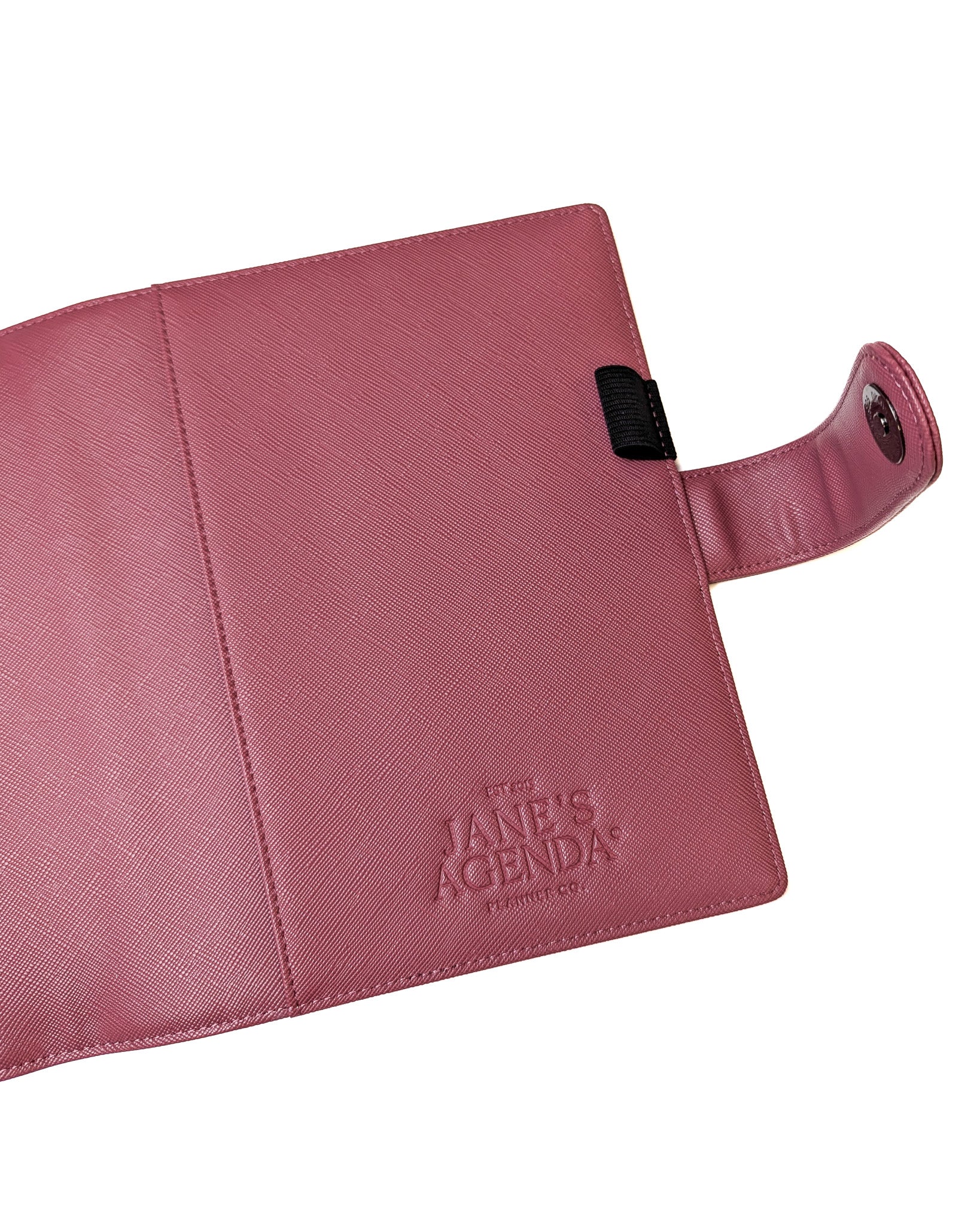 I have several Janes agenda pebble grain vegan covers but this Saffiano vegan leather is beautiful!!! Love the texture! Got it in the Rouge color and the color is gorgeous!! I’m using it for work and it looks so professional. Highly recommend