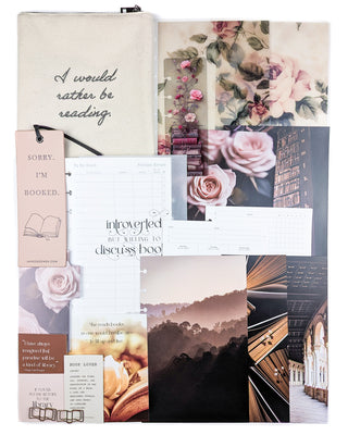 A curated set of planner accessories including inserts, a planner cover, lots of dashboards and layers, journaling cards, stationery items, and a gift or two for you.