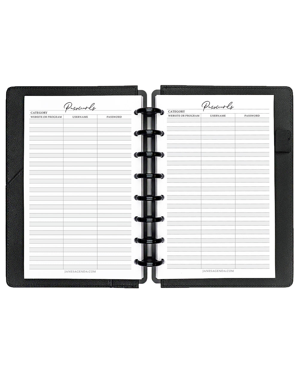 Password tracker by category planner inserts.