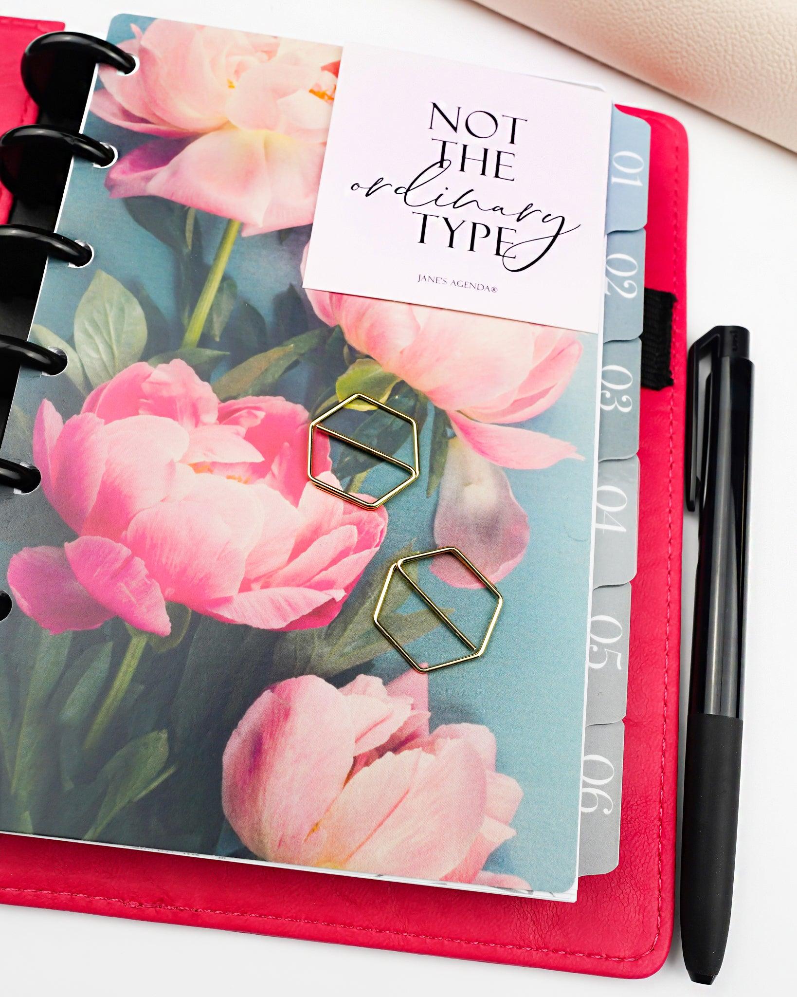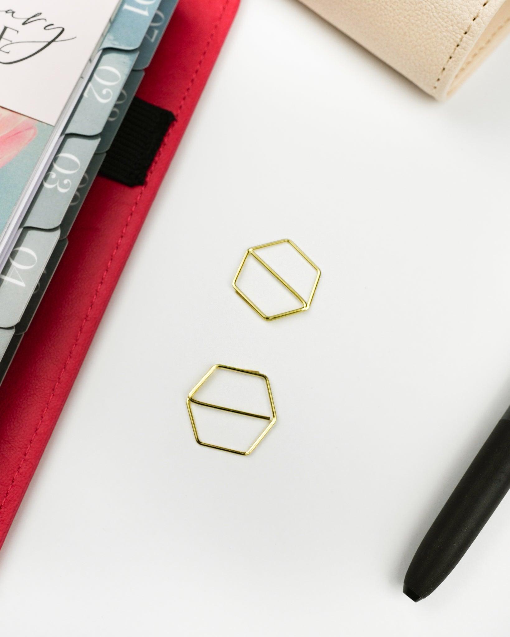 These gold metal paper clips will clip and hold anything in your planner. Add a little decorative flair by layering a quote card over your planner pages or dashboard with these clips.  Need to clip a list or note to self without permanently writing it down on your pages? Clip it!
