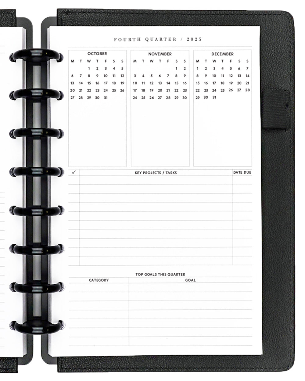 Stay focused and on track with these dated quarterly planning inserts for your disc-bound planner.