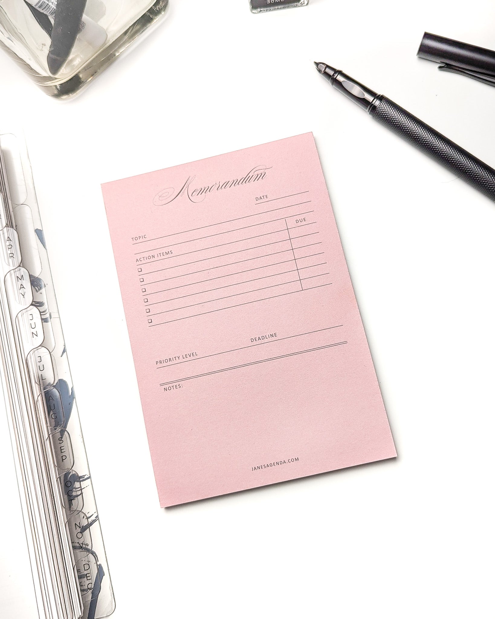 These Memorandum sticky notes are designed to look like a cute business memo pad in a gorgeous shade of pink, making them an absolute boss babe essential.